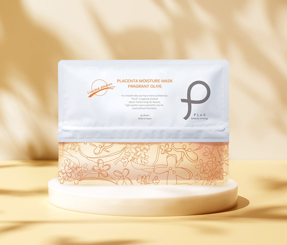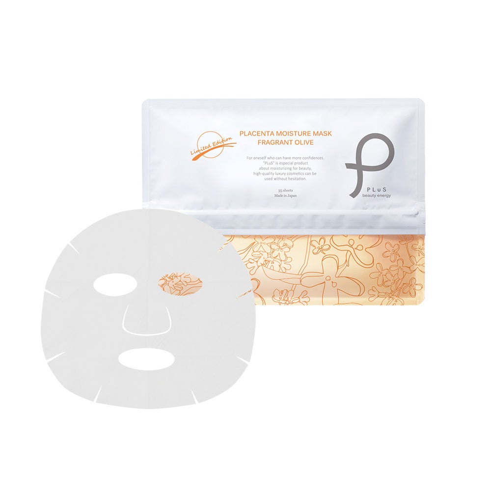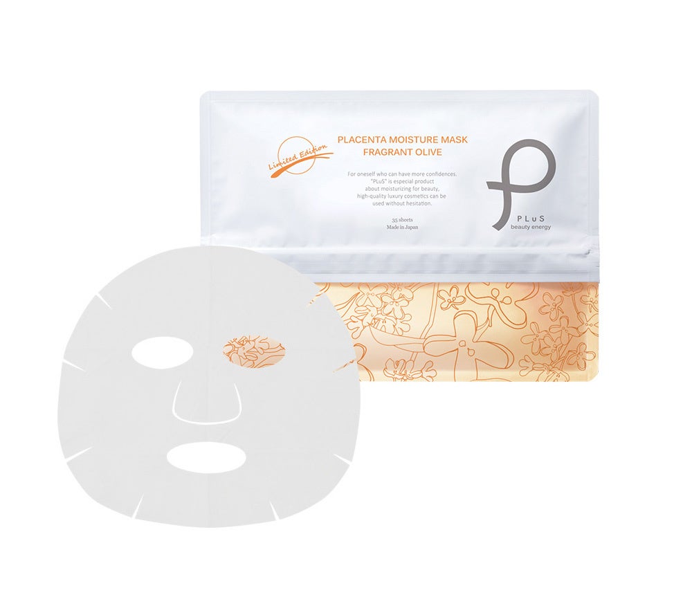 スキンケアブランド『プリュ(PLuS beauty energy)』のラインナップの1つである「プラセンタ モイスチュアマスク」は、密着度に優れる特殊繊維シートに、美容成分11種類を配合した超微粒子保湿ローションを含侵させた人気のシートパックです。
