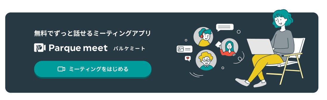 パルケでは、無料でずっと話せるミーティングアプリ「パルケミート」を5月31日に提供を開始しました。無料で、時間制限がないため時間を気にすることなくご利用いただくことができます。