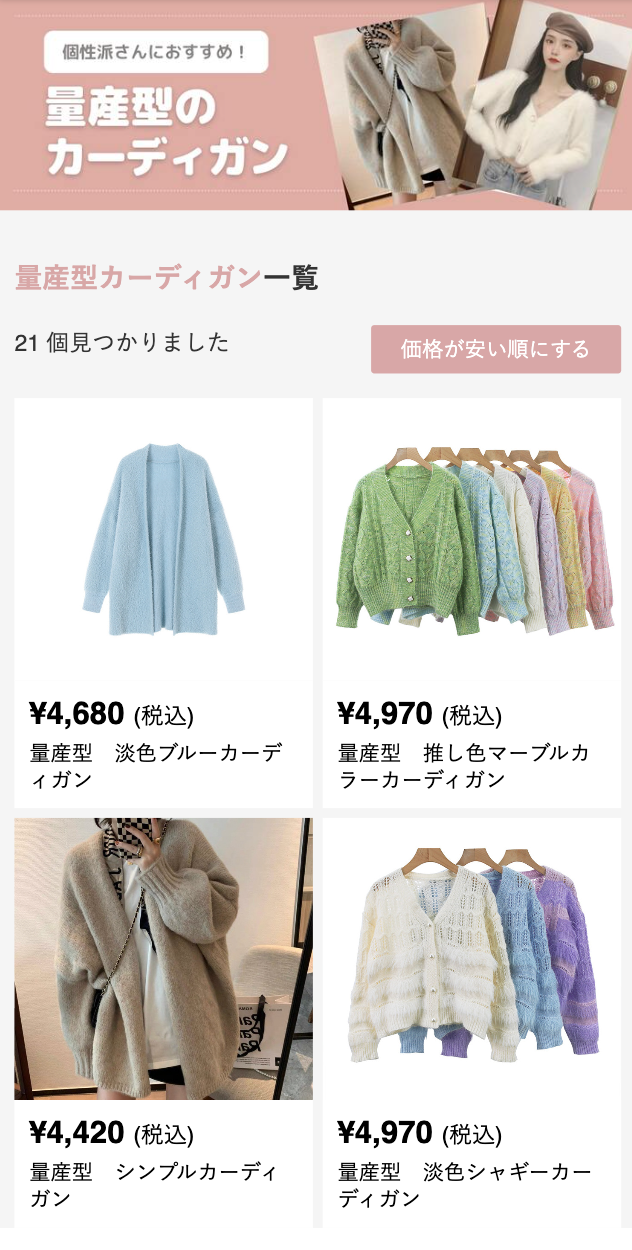 【新商品セール】量産型コートやカーディガンなど冬物のアウターを追加