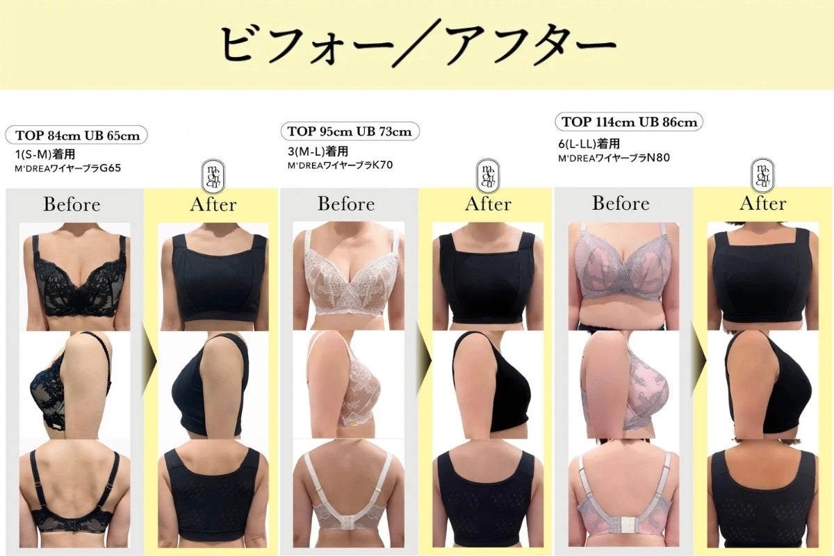 サイズはB〜Oカップ相当までを目安に、体型やサイズの変化を前提とした設計で、「今の自分に合う」を選びやすい下着を提案しています。