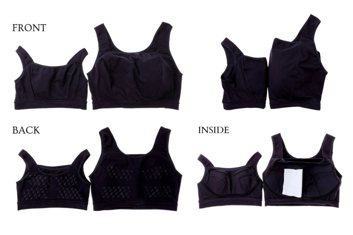 オールサポートブラはアンダーサイズを基準に選択し、モールドカップとストラップ調整により、現在のバストサイズに合わせて調整可能です。