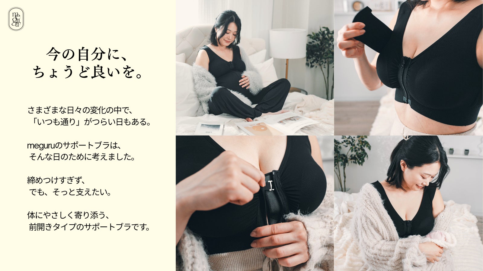 オールサポートブラは、産前産後・授乳期・体調変化のある時期や、着脱に負担を感じやすいシーンを想定して設計した前開きタイプのブラです。