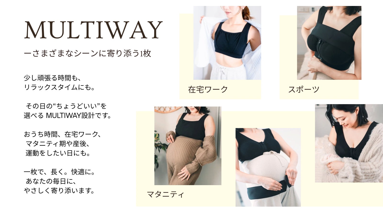 産前産後や授乳期など、バストサイズの変化が大きい時期にも安心して着用いただけます。