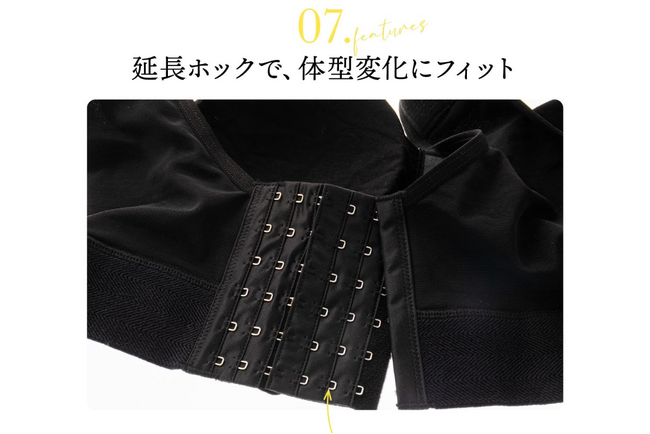 産前産後・術後など、アンダーサイズが変動しやすい時期に対応できる延長ホック(別売)をご用意。