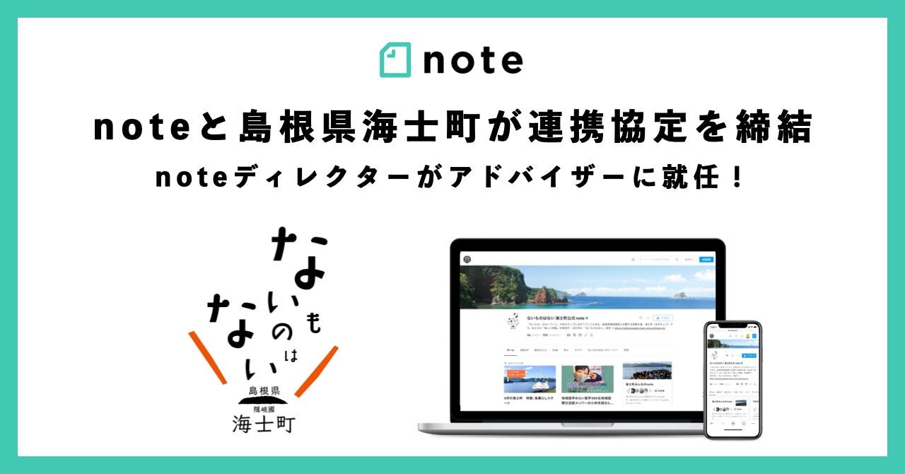 【海士町役場】【交流×団結】島根県海士町とnoteが連携協定を締結、noteディレクターがアドバイザーに就任!広報・ブランド戦略や情報発信を総合的にサポート