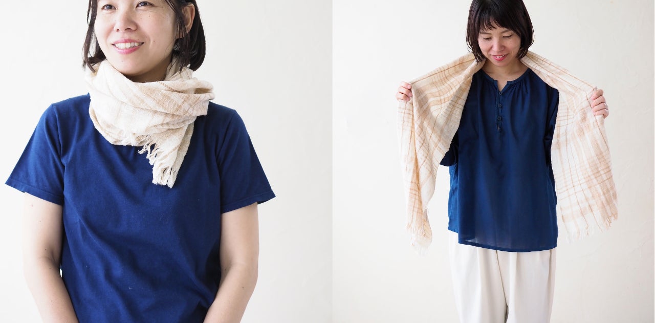 「手つむぎ糸の和綿マフラー」は綾織を採用。