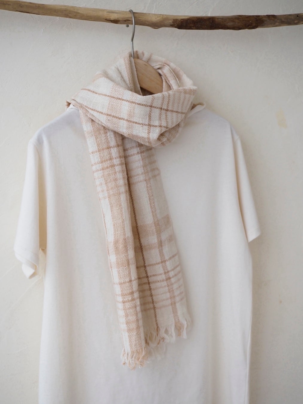 ・品名:手つむぎ糸の和綿マフラー【チェック】【きなり×茶】