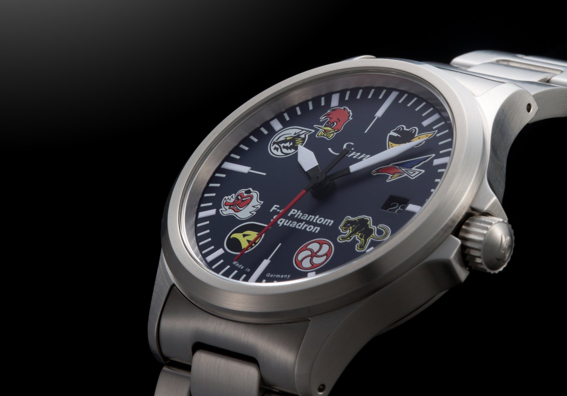 この時計は、ジンのプロフェッショナルの高い要求に応えるパイロットウォッチの優れた機能性に加え、随所にファントムのエレメントをデザインした200本限定の特別モデルです。