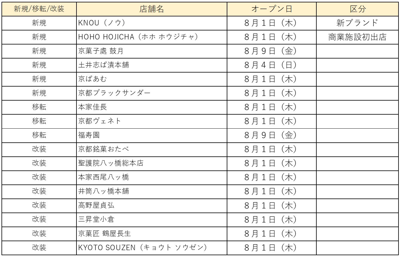 京土産の定番や話題の新ブランドなど、新店15店を含む計27店が順次オープン