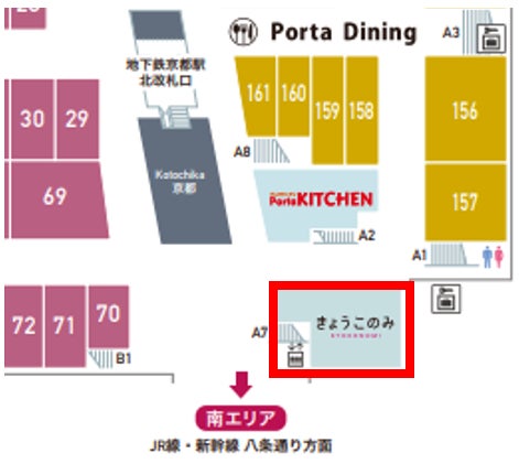 ・駅ビル1階 「おみやげ小路 京小町」各店、「おみやげ街道 JR京都駅中央口店」