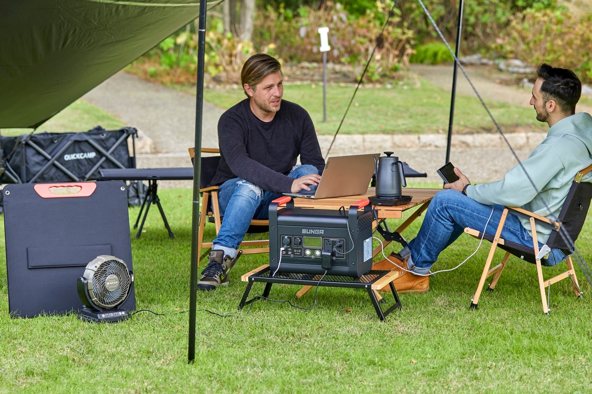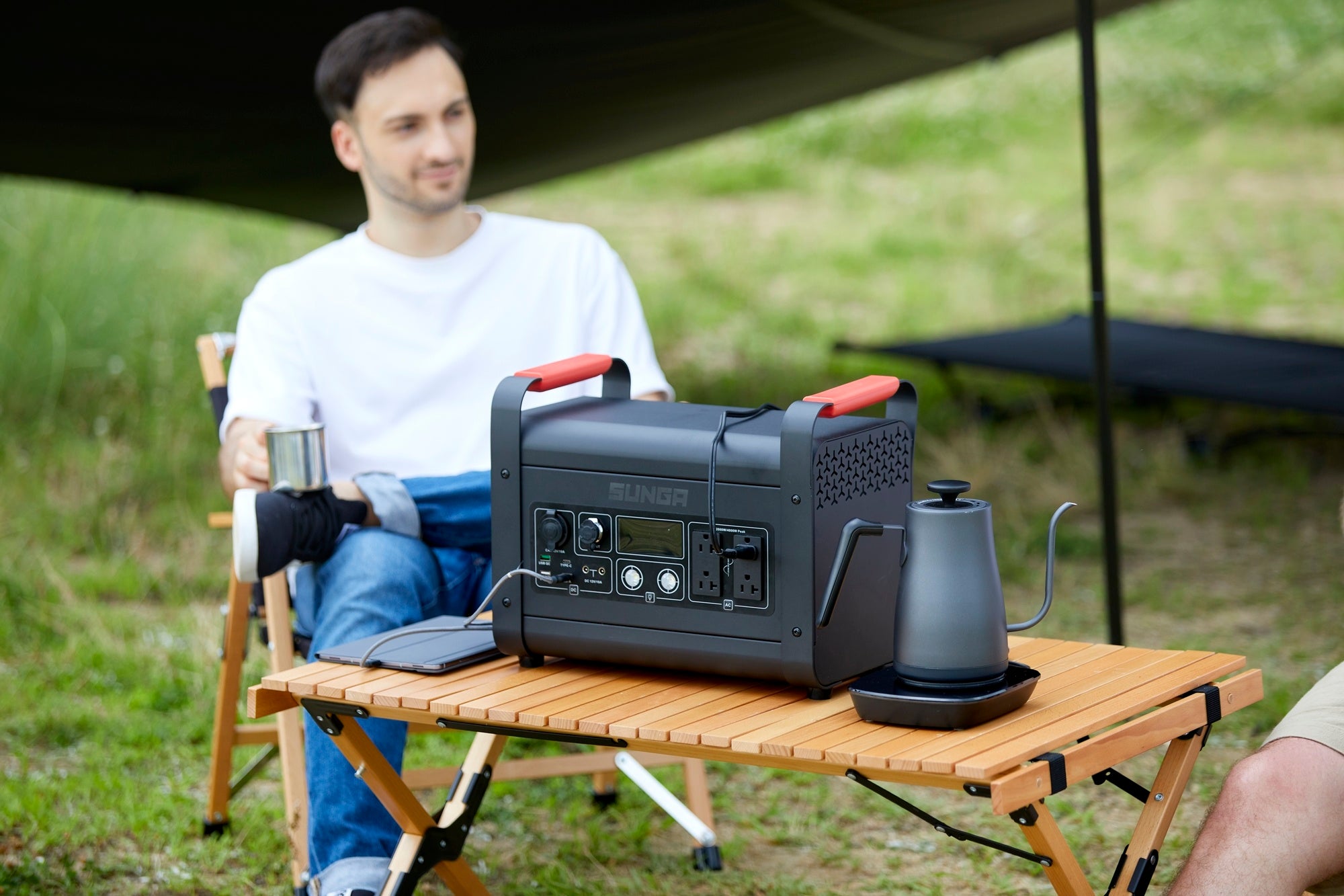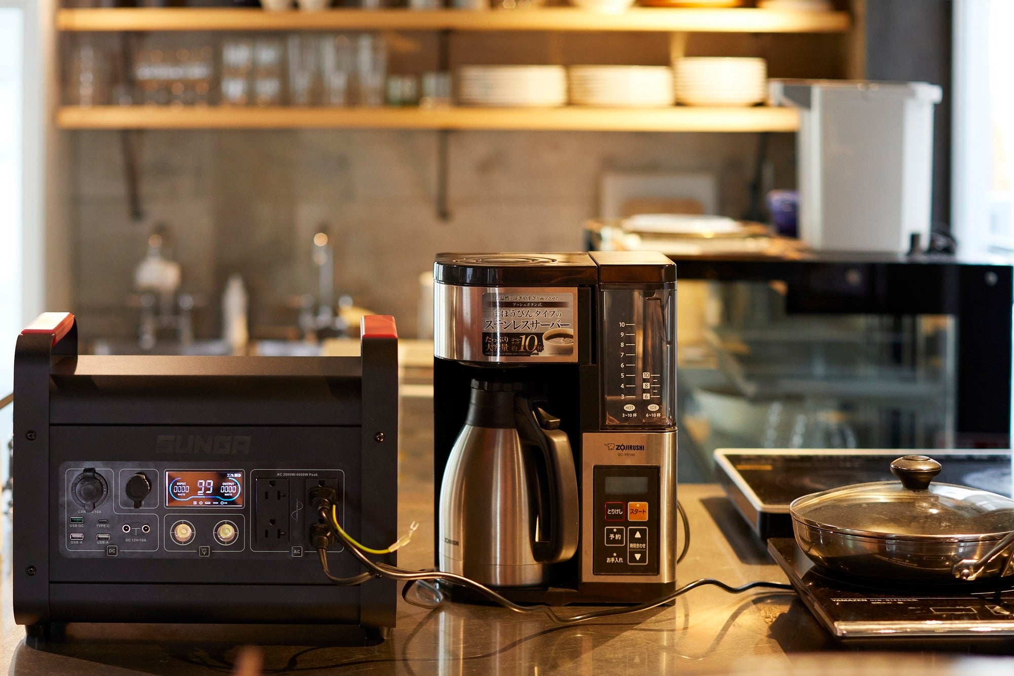 ドライヤーや電子レンジ、IHクッキングヒーター、ルームエアコンなどの高出力家電はもちろん、キャンプや車中泊などで、ケトル、電気ストーブ、電気毛布など同時使用できる余裕の出力です。