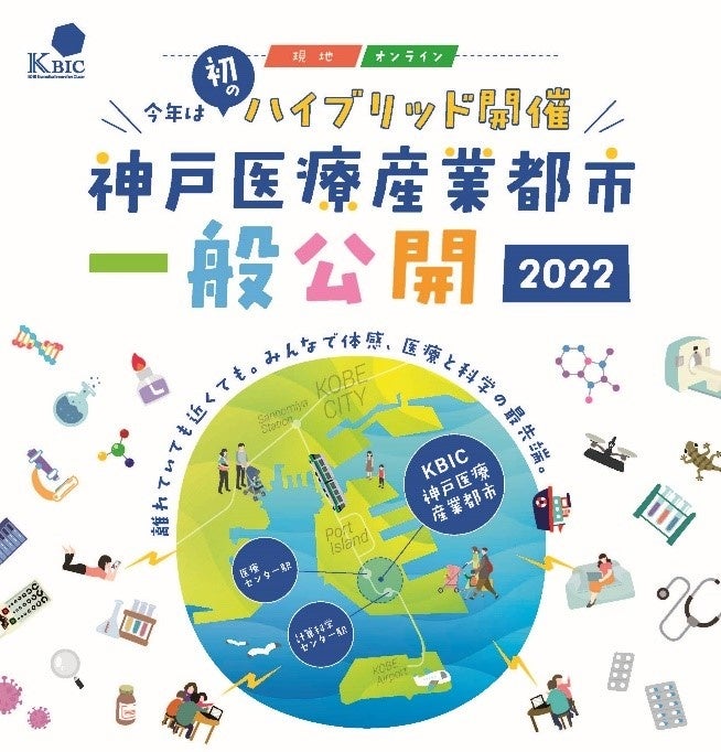 最先端の医療や研究開発が行われている神戸医療産業都市(KBIC)の取り組みを、実験体験や見学ツアー、セミナーなど、様々なプログラムを通して、市民の皆さまに知っていただく年に1度の神戸医療産業都市最大の市民イベント「神戸医療産業都市一般公開2022」を開催します。