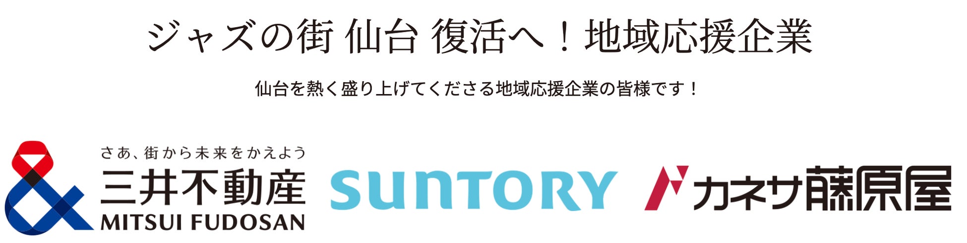 本開催は、ジャズの街 仙台復活を目指して【仙台の街をジャズで盛り上げたい!】と熱く応援してくださる企業の出資により開催される。
