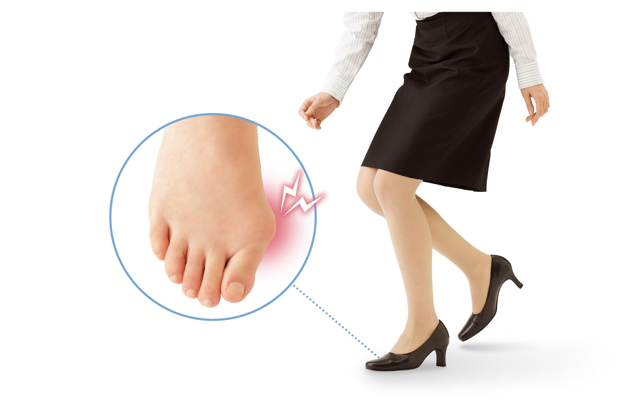 原因としては、足先を圧迫するつま先の細い靴や、ヒールの高い靴を長時間履いたり、加齢による筋力の低下などが考えられます。そのため、女性が発症する割合が多いことも特徴です。