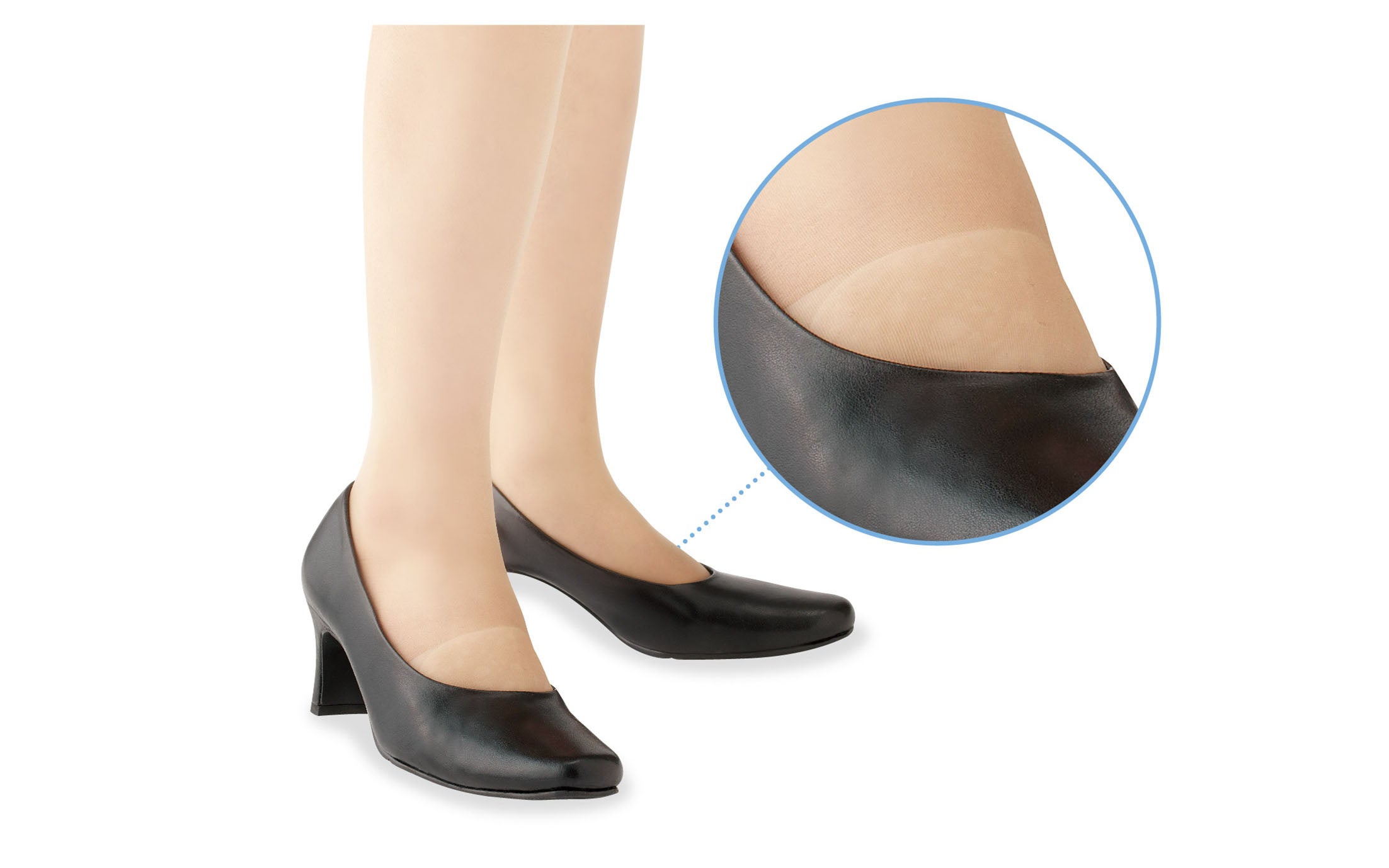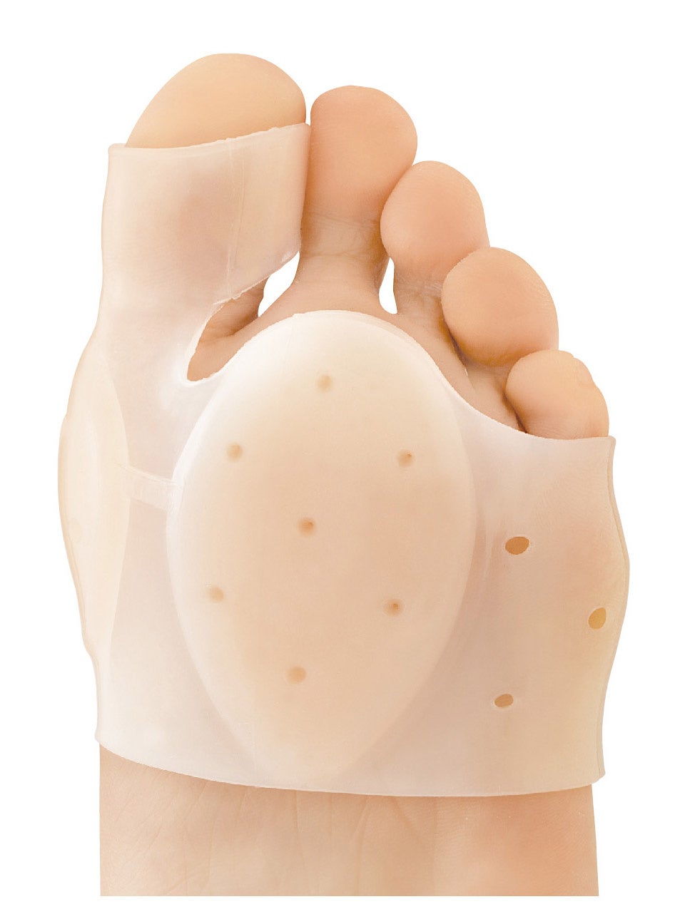 足の親指の付け根にある衝撃吸収防護パッドが腱膜瘤を防護し、外部からの接触や衝撃を緩和。
