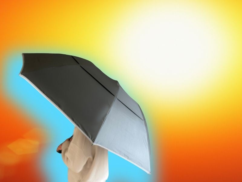 晴雨兼用で使えるから、青空の下では強い日差しをカット。高い遮熱性で日陰をつくり、暑さをしのいで汗で濡らしません。
