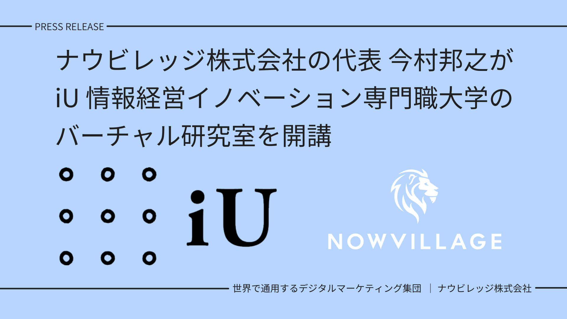 デジタルマーケティングに特化したコンサルティングサービスを提供するナウビレッジ株式会社の代表 今村邦之がiU 情報経営イノベーション専門職大学のバーチャル研究室を開講しました。バーチャル研究室では、デジタルマーケティングと呼ばれるWebサイト・Google広告・SNSマーケティングを網羅的に扱います。