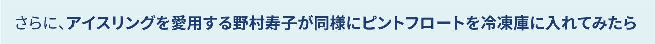 ピントフロートが寝苦しさ解消のために役⽴つのでは?と冷凍庫に⼊れてみたところ、柔らかさそのまま、霜も露もつかない、ひんやり気持ちいい枕ができあがりました。