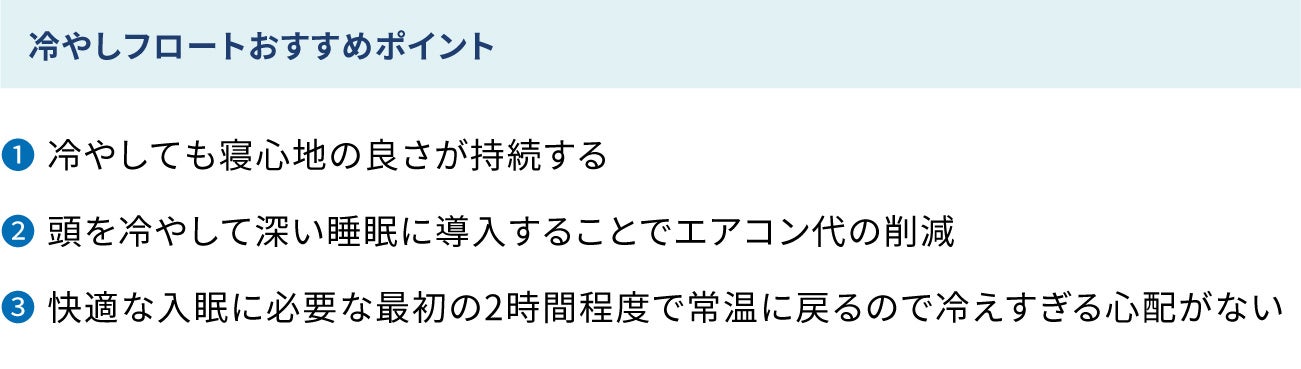 今回、セラピストの⼿のような感覚で「⾸肩の緊張を緩和するピントフロート」を、冷やして快適睡眠に役⽴てるという暑くてジメジメして寝苦しい季節に役⽴つ使い⽅をご提案させていただきます。