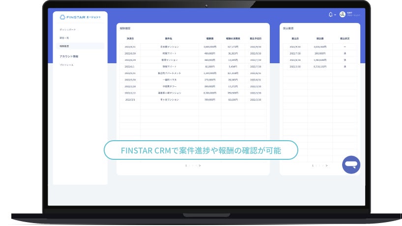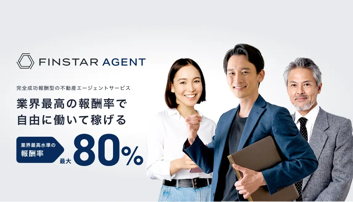 「FINSTAR AGENT」では、業界最高水準の報酬率80%を提供し、不動産エージェントの活躍に応じた高い報酬が得られます。
