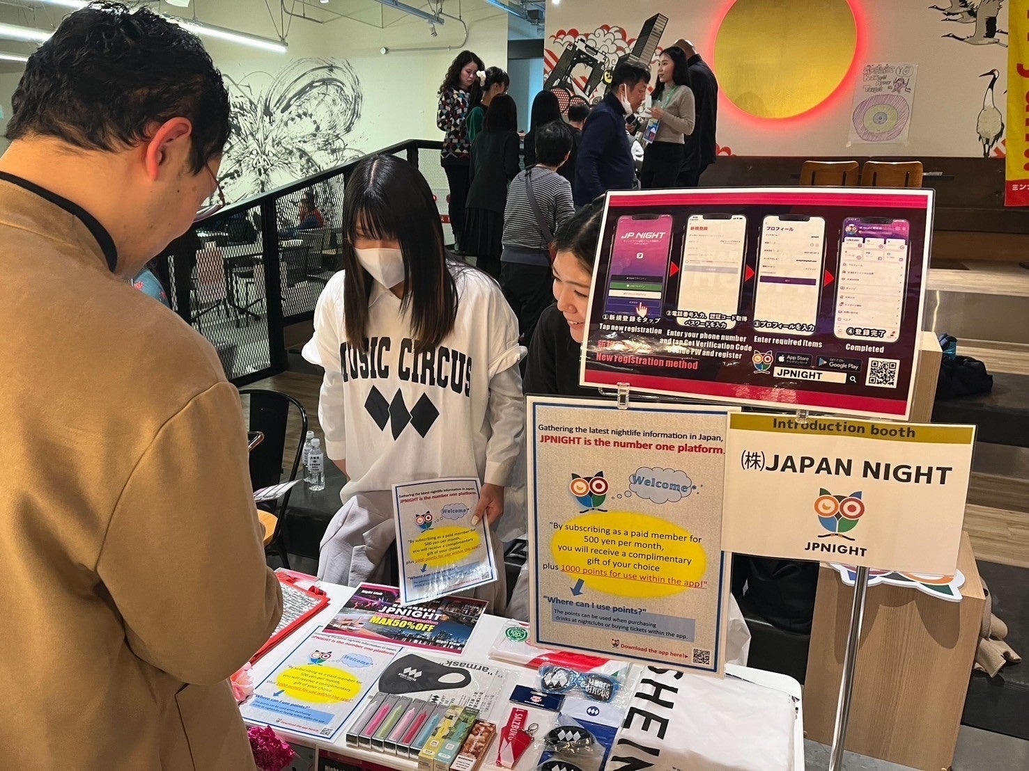 JPNIGHTのPRブースでは、アプリをご登録していただくとお得な特典があるので是非、ご参加ください!
