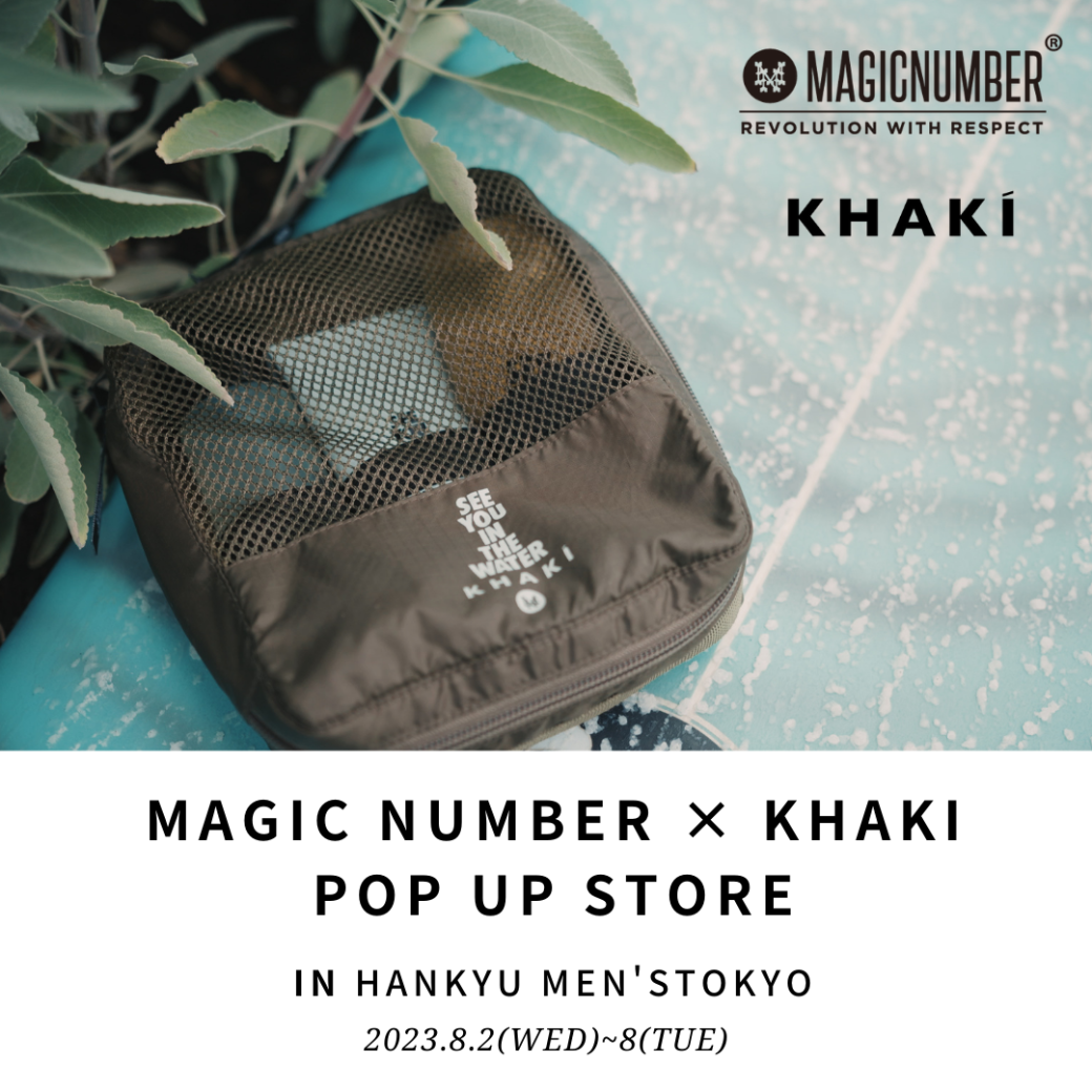 感度の高いメンズのライフスタイルアイテムを取り揃える阪急メンズ東京B1Fにて、コラボ新商品「KHAKI×MAGIC NUMBER」を中心とした夏の期間限定POP UPイベントを開催します。
