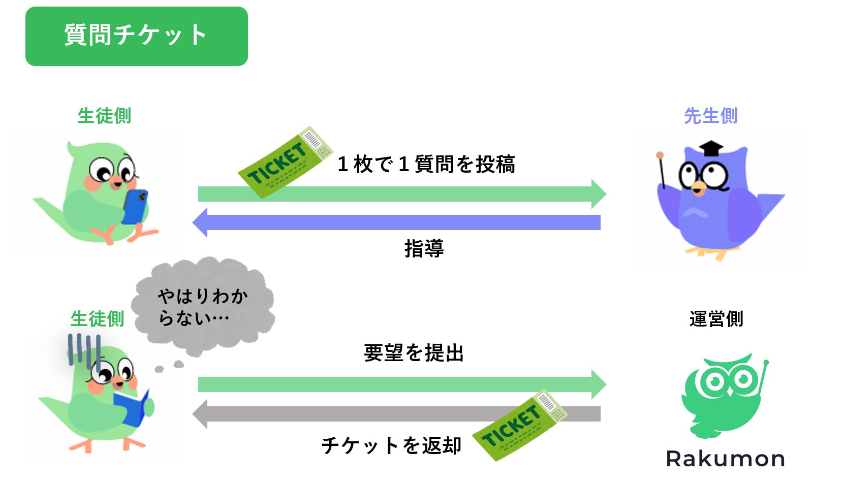 質問指導の途中で「先生を替えてほしい」などの要望があれば、『質問チケット』が1枚返却されます
