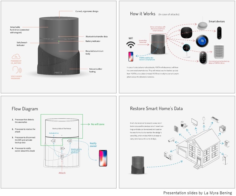 Fukuoka, JAPAN (April 1st, 2022) - So-called “Smart Homes” have been introduced in our houses since early 2010s. It is very convenient for controlling various appliances connected by network in one place. People, however, have been feeling anxious about hacking or leakage of private information through the smart home network. Now, you don’t need to worry about security concerns. “PORTA” is a virtual gate keeper placed between home network and outside network. With PORTA, your precious home is protected with strong security and backup functions (This is our dream).