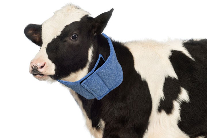 汚れても洗って、清潔に使用できます。また、伸縮性のある素材なので、子牛の首を絞めすぎず、運動の邪魔になりません。