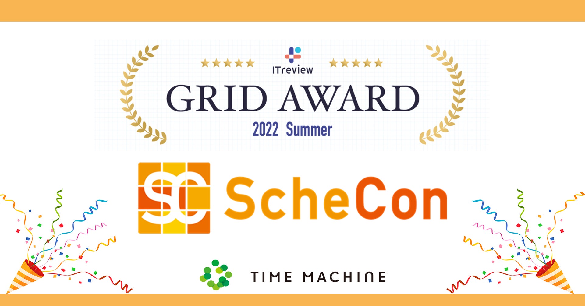 株式会社TIME MACHINE(本社:東京都渋谷区、代表取締役社長・CEO:石澤秀次郎/以下、タイムマシーン)は、企画・運営しております日程調整&オンライン名刺交換サービス『Schecon(スケコン)』が、『ITreview Grid Award 2022 Summer』の「日程調整」部門において「Leader」を受賞したことをお知らせいたします。