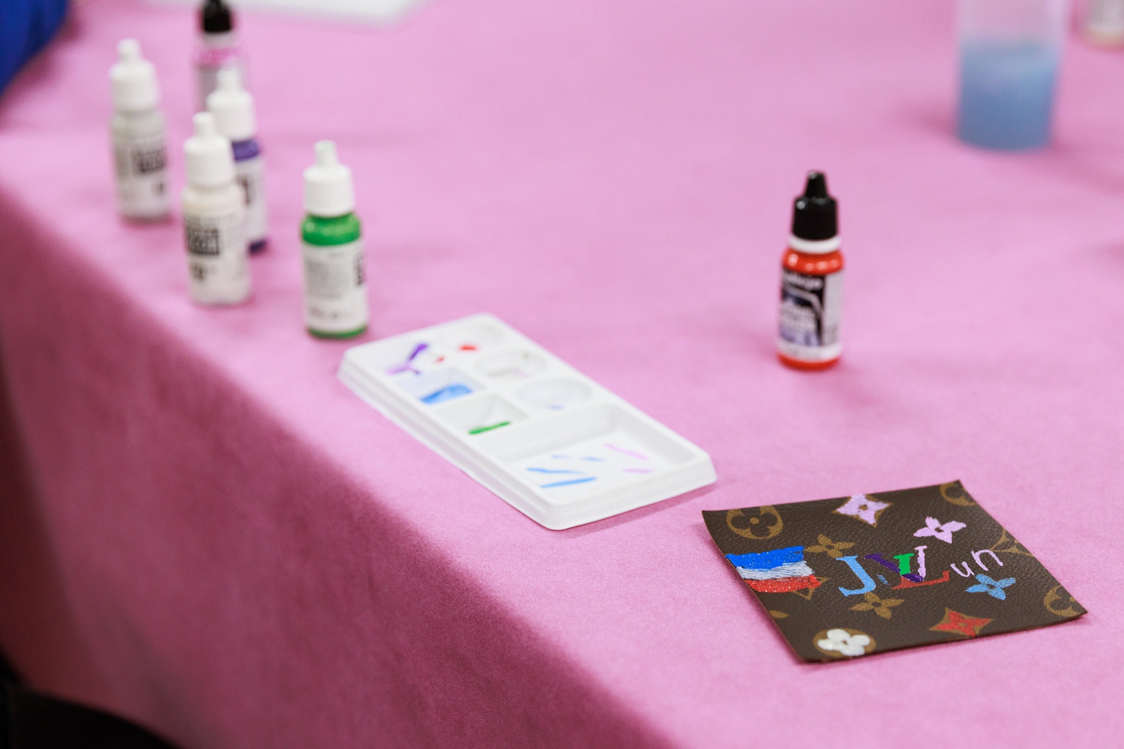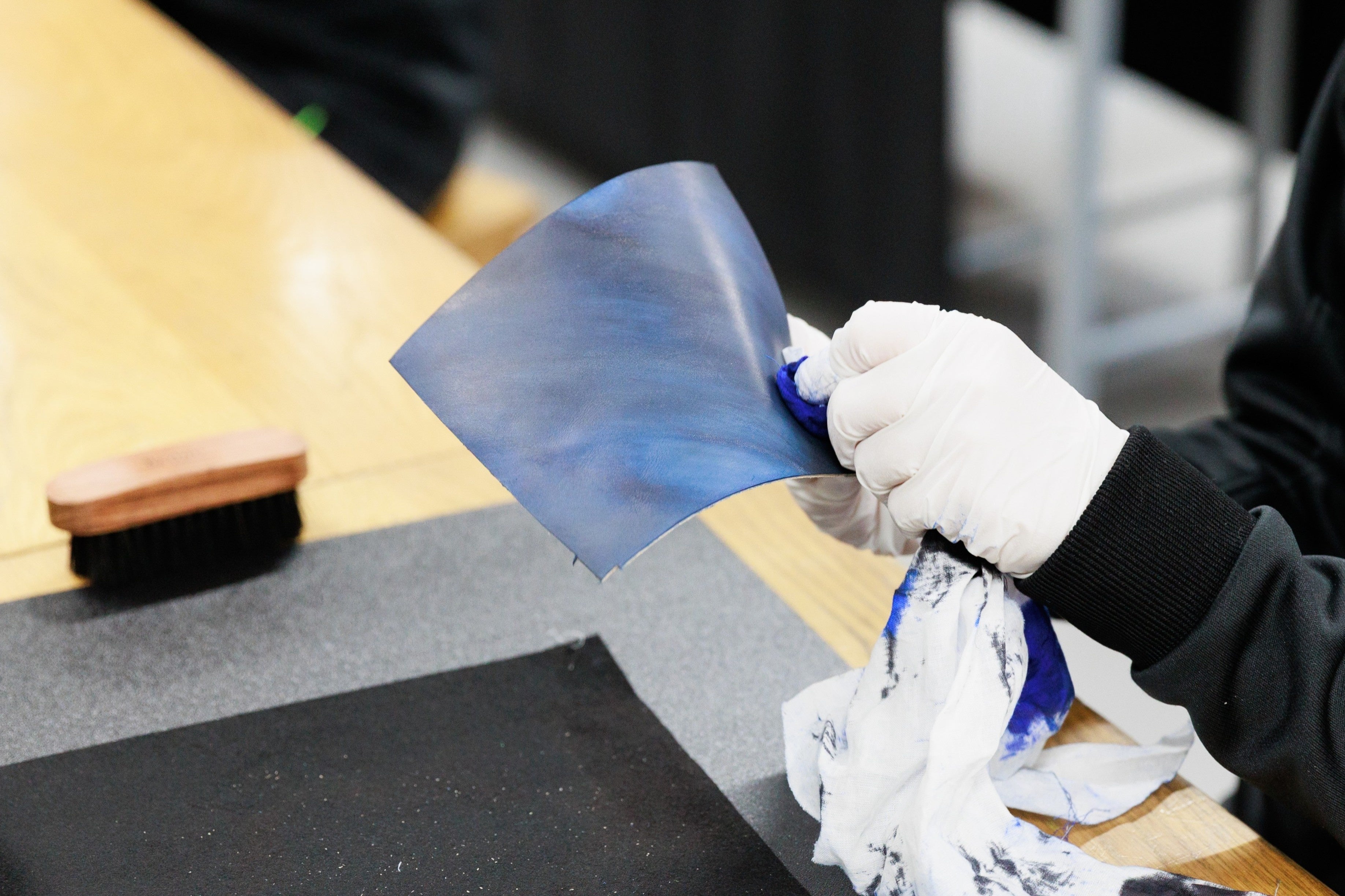 ベルルッティ: ベルルッティが誇るパティーヌ(革に染色を施す技法)の体験を通し、「自分らしさ」を色で表現。職人によるデモンストレーションを見学後、好きな色を選んで革に色付けを行いました。