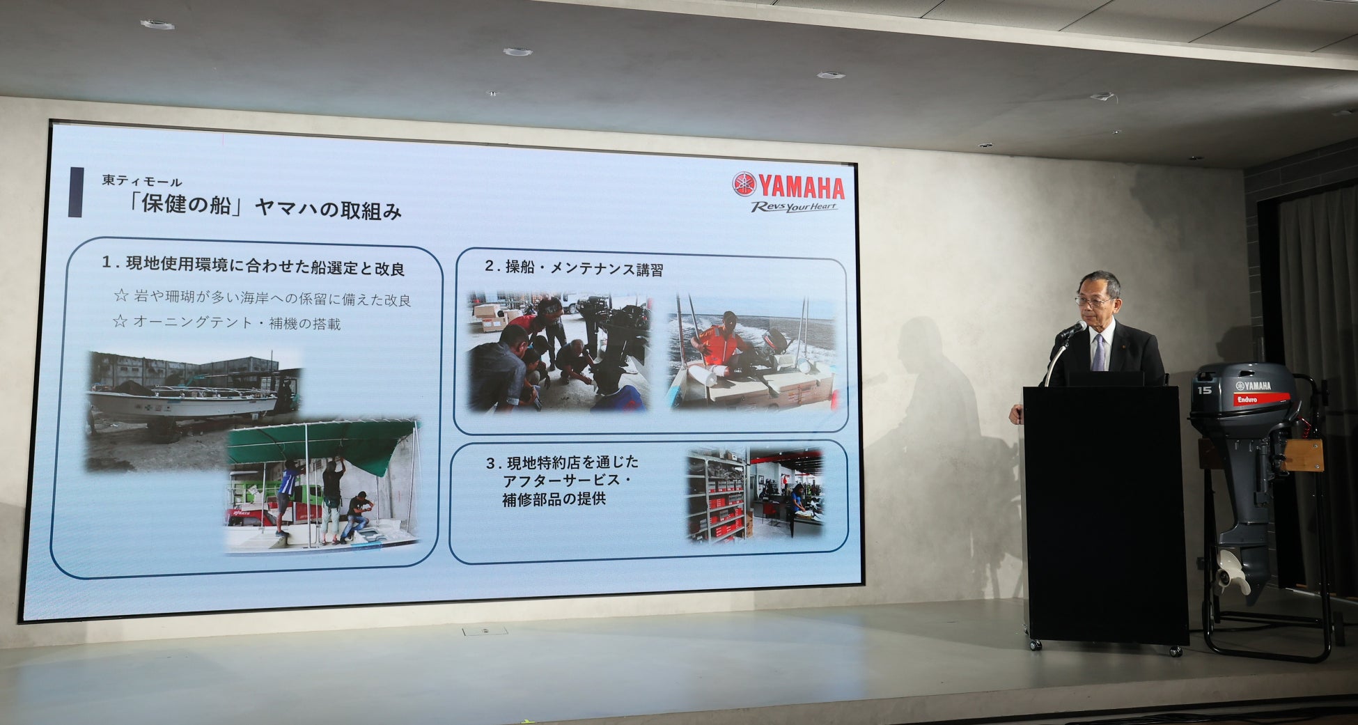 当社は使用環境に合わせた船や船外機の選定と改良を実施し、シェアは2020年に船舶を手配し、船舶の運用・維持管理の仕組みづくりなどを展開すると共に、船舶を使った移動診療を通じ、保健センターとの関係を強化。3年後に保健省に船を移譲するプロジェクトを立ち上げ、成果を収められました。保健センターもその価値を高く評価しており、現在も保健の船はアタウロ島で多くの町を訪問し、乳幼児の健康管理や島民の病気の予防に向けた活動に活躍しています。