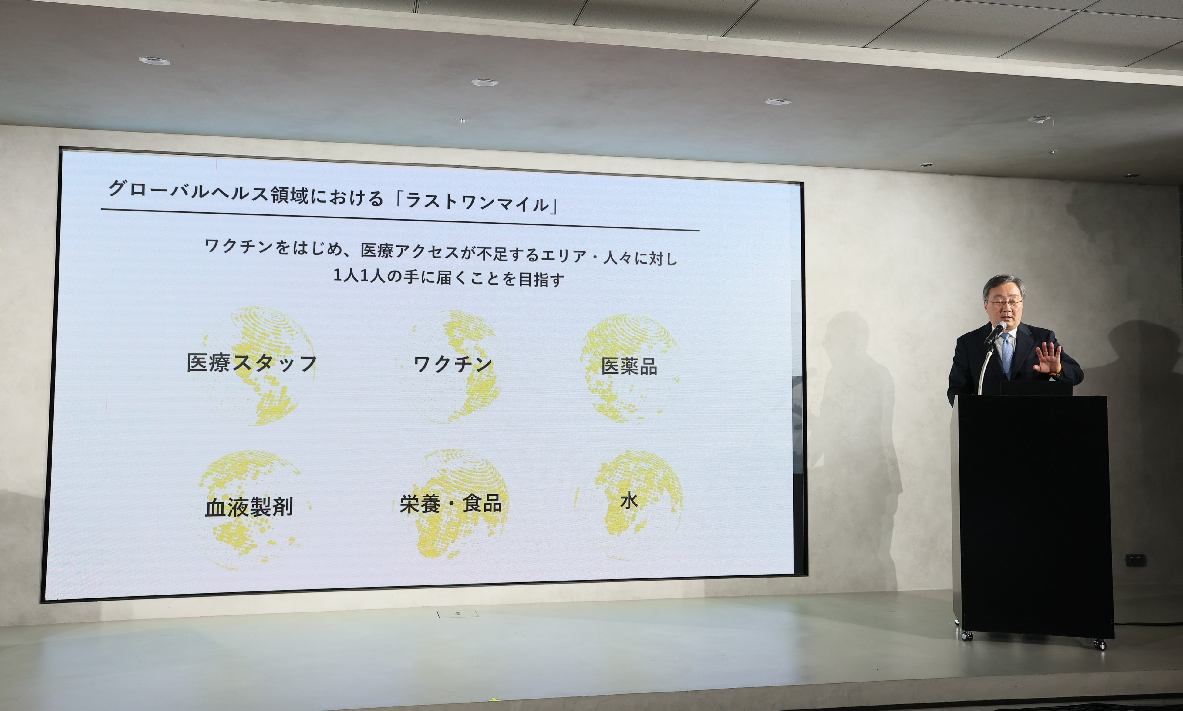 グローバルヘルス領域における「ラストワンマイル」とは、ワクチンをはじめ、医療アクセスが不足するエリア・人々に対し一人ひとりの手に届くことを目指しています。一方で、コロナ禍では先進諸国にはきちんとワクチンが届いていましたが、南アフリカやケニア、ナイジェリアでは十分には届かず、ワクチン格差が浮き彫りとなりました。岸田首相も、2023年9月21日に開催された「G7保健フォローアップ・サイドイベント」に登壇し、PPR(予防、備え、対応)の強化と、公平なアクセスの確保と円滑な資金動員が重要であると述べています。今回登壇する豊田通商とヤマハ発動機は、製薬会社でも医療機器メーカーでもない企業です。しかし、グローバルヘルス、医療で誰一人取り残さない社会を作ることに世界中で貢献しています。今回、企業のトップがそれを発信することに大きな意味があると考えています。