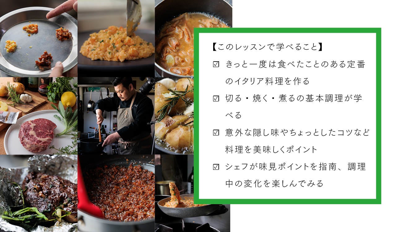 「信頼できるシェフの動画で学ぶ」「食材がすべて分量分だけ届く」といった動画付きミールキットの特性を活かしながらも、同じテーマのレッスンを複数回積み重ねていくことで、1度の料理体験では得られなかった学びが得られるだけでなく、覚えたことを応用する機会も生まれます。