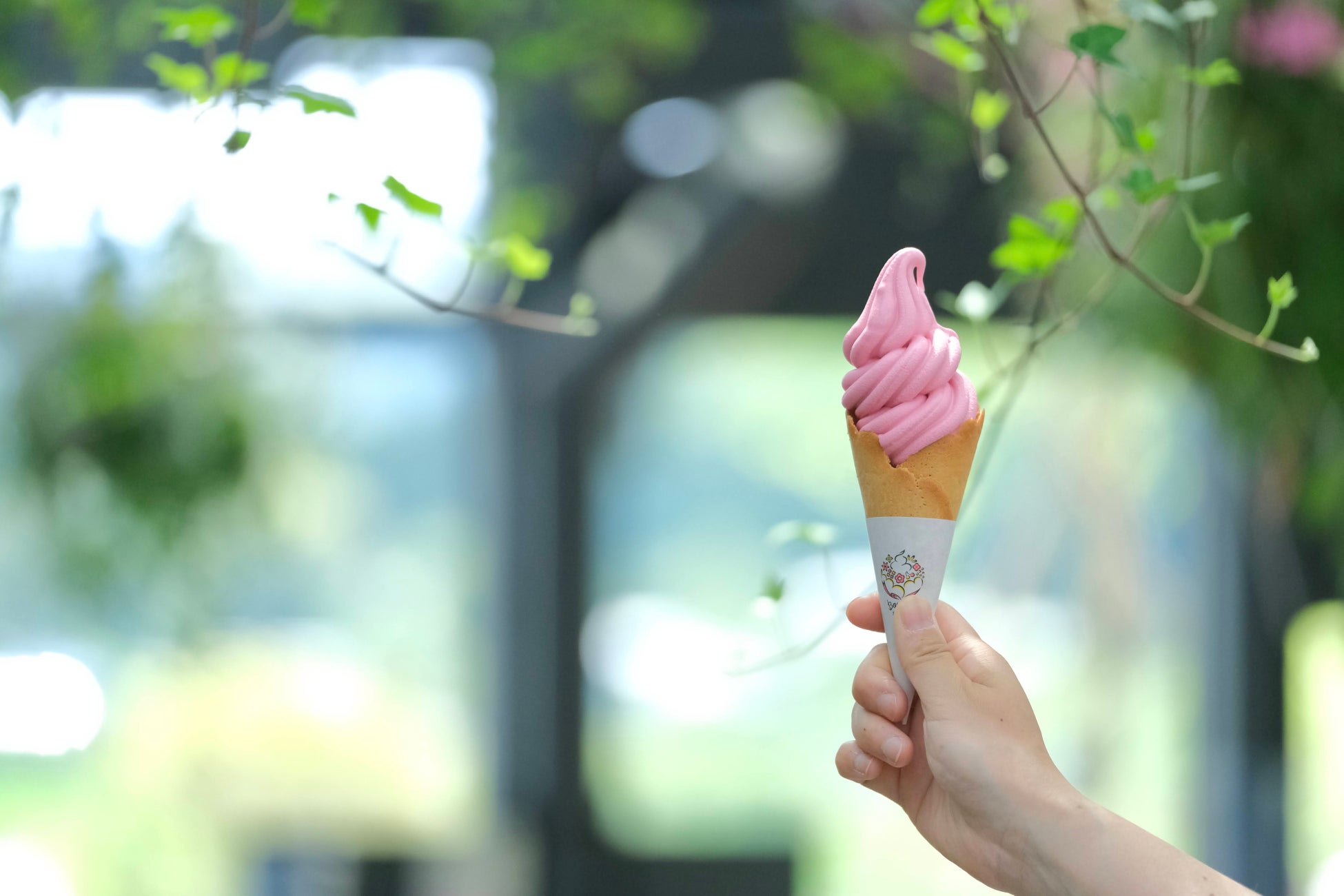 ピンク色が美しい見た目にも華やかなバラのソフトクリーム。サクッとしたラングドシャコーンで贅沢な美味しさ。