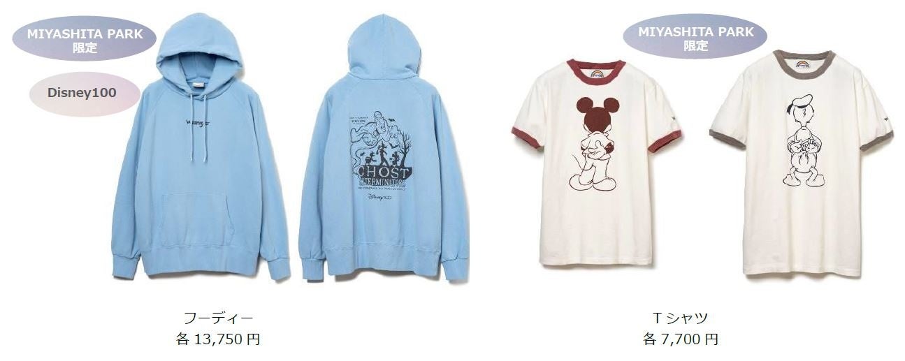 RAYARD MIYASHITA PARK限定で発売されるフーディーとミッキーとドナルドのキュートな後ろ姿をプリントしたTシャツが登場。