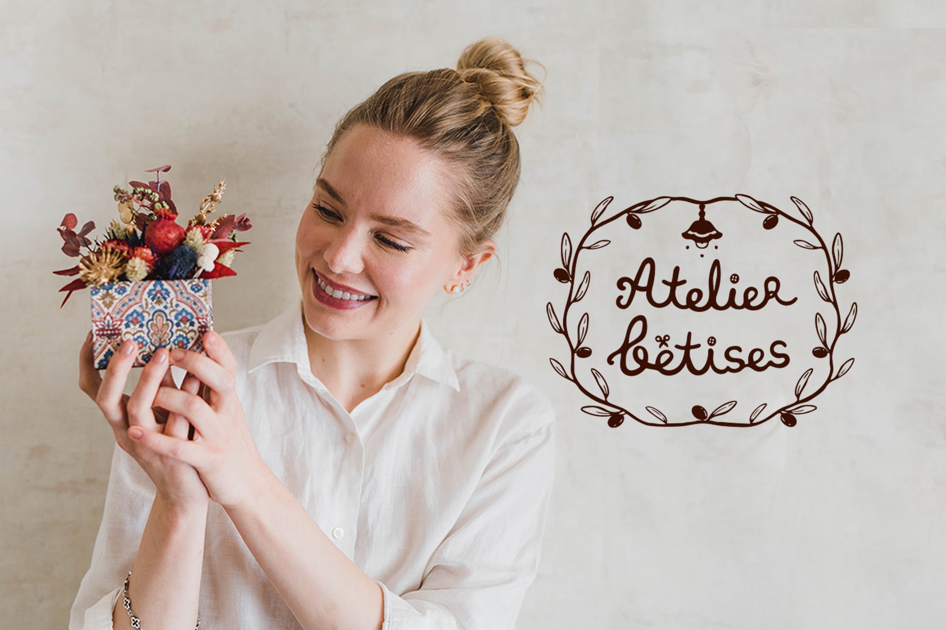 花と器、木工・手芸・キャンドルづくりなどの手仕事を通して暮らしを楽しむ体験型アトリエを併設。