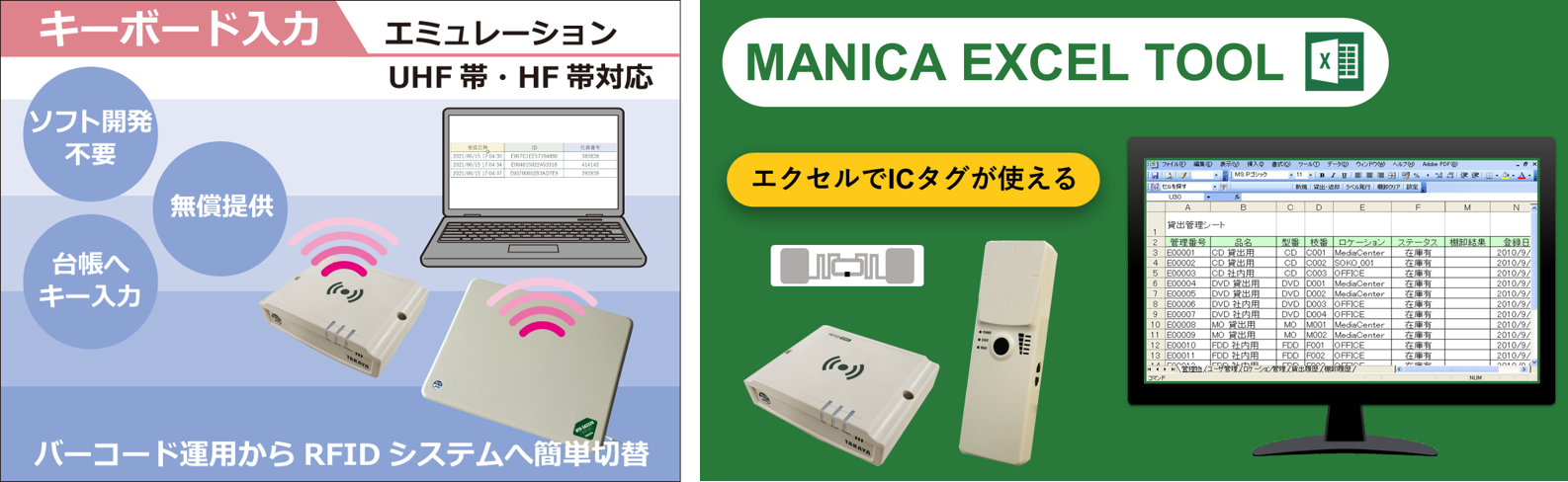 ■バーコードからRFIDへ簡単に置き換え 「HIDリーダ・Excelツール・キー入力ソフト」