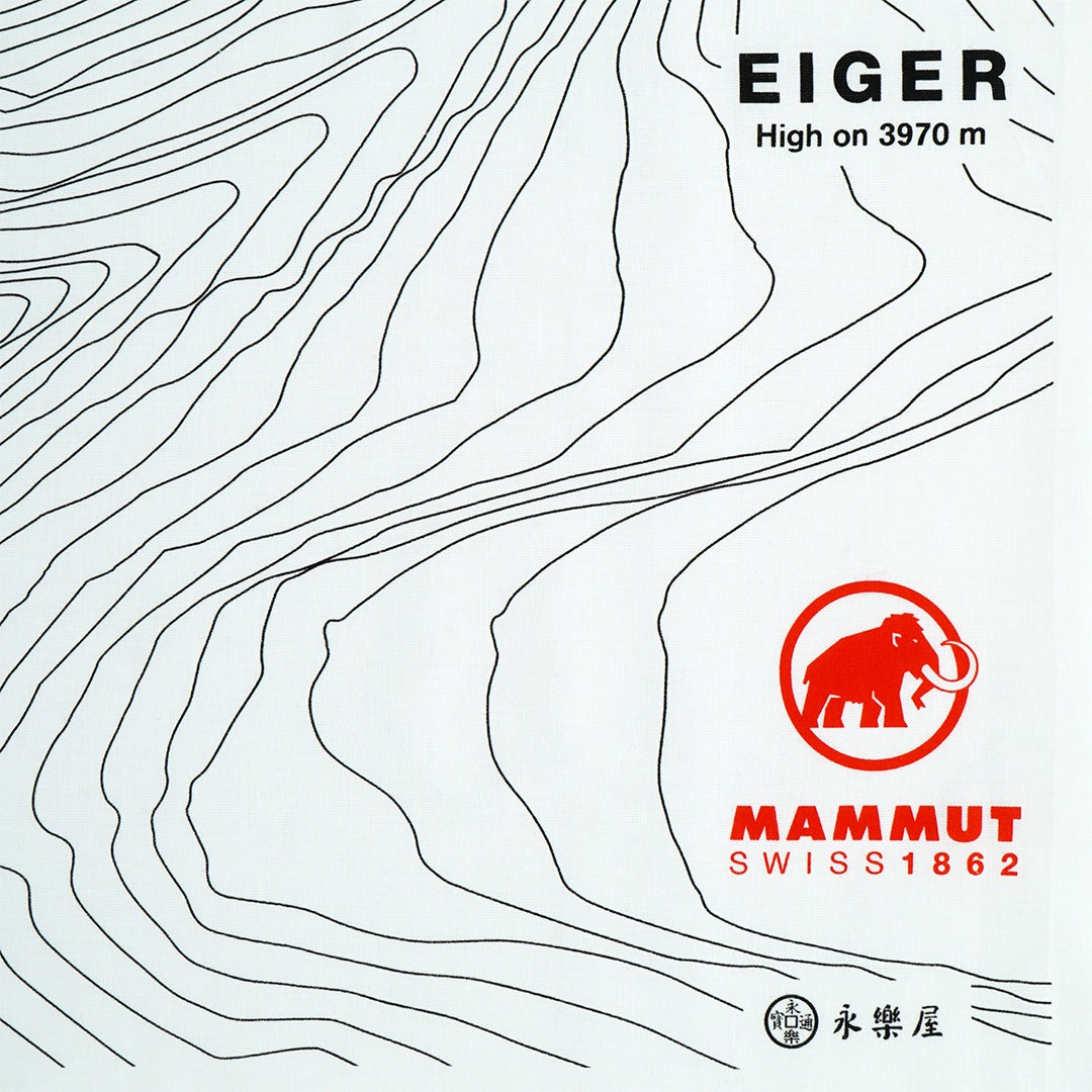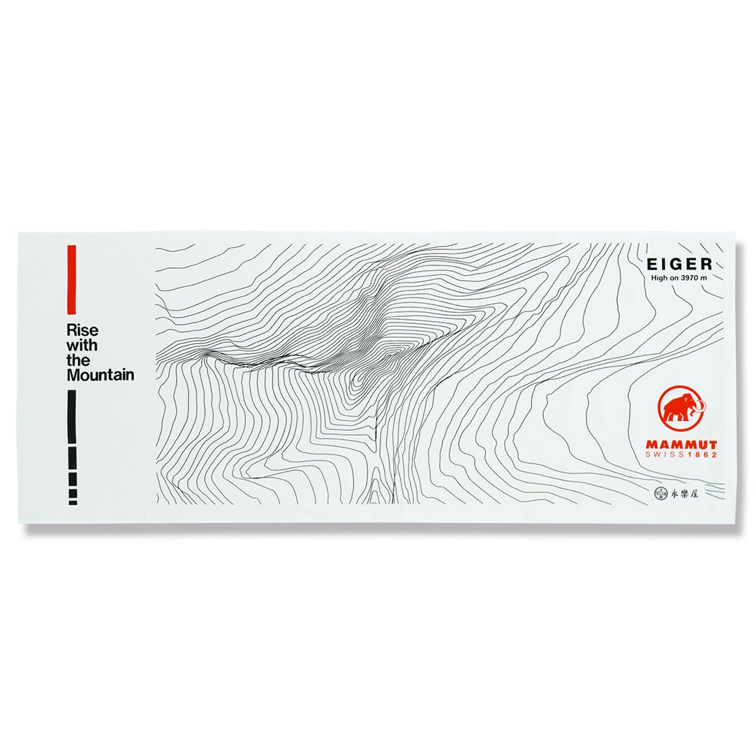 本コラボレーションでは、スイスの名峰「Eiger -アイガー-」の等高線をモチーフに、マムートと永楽屋のロゴを配した手ぬぐいを制作。繊細な線の表現にこだわり、細部まで丁寧に仕上げました。
