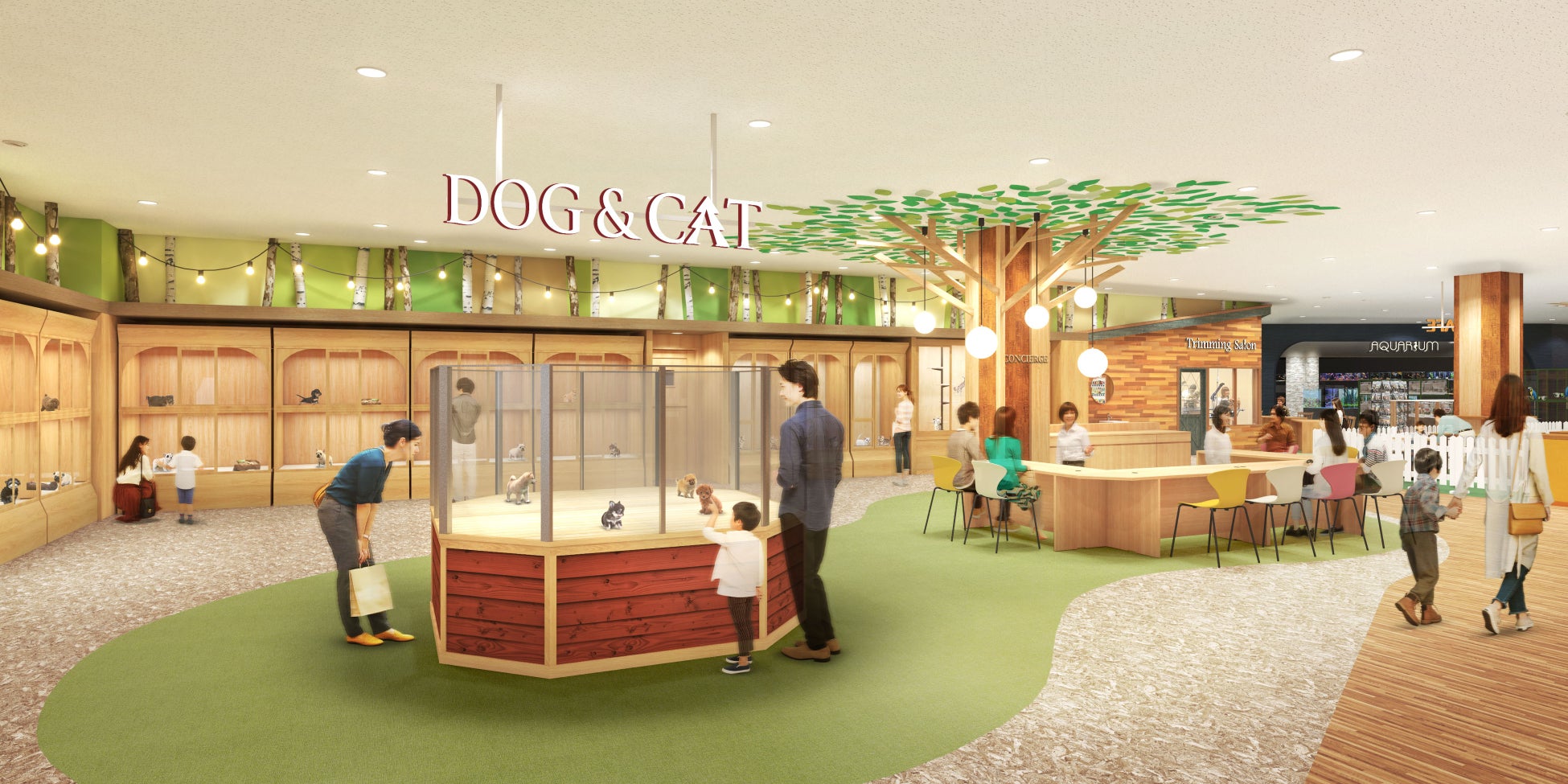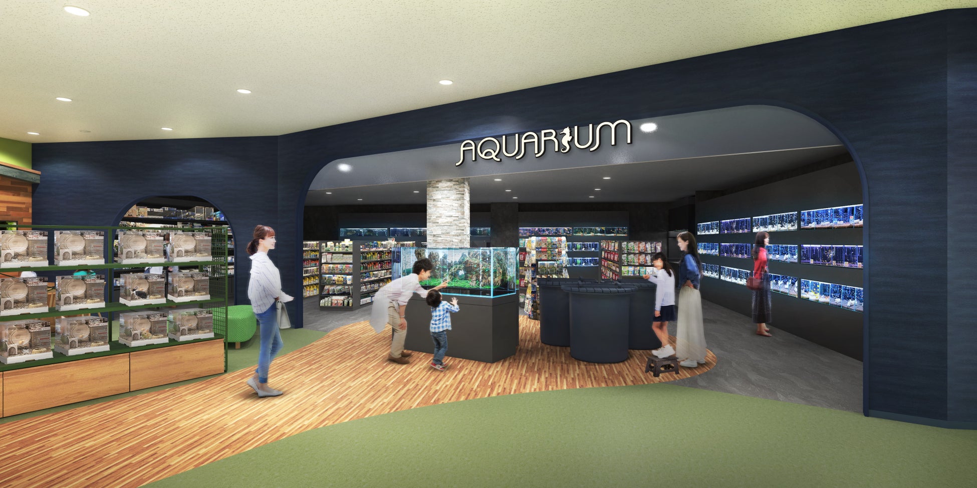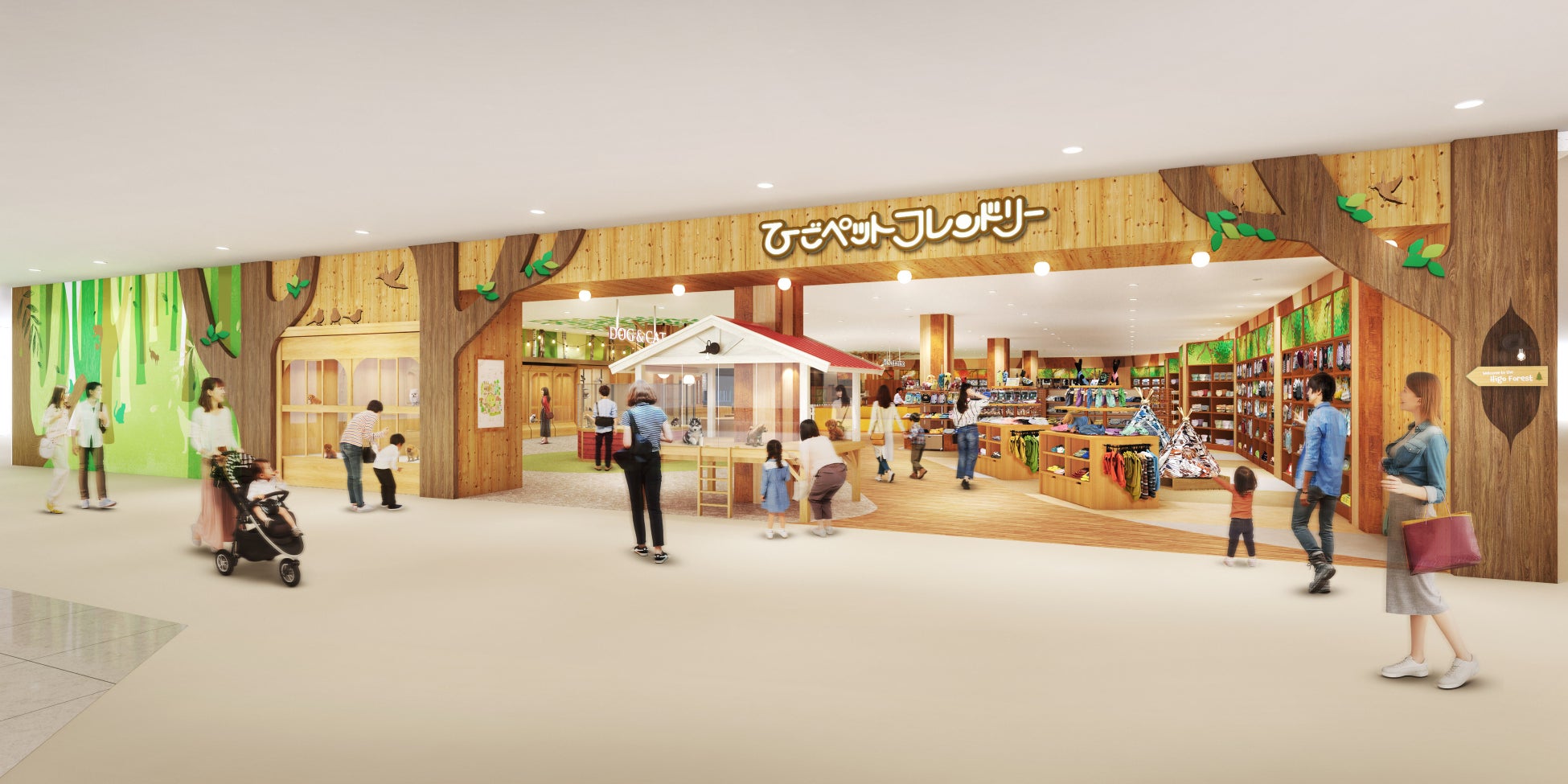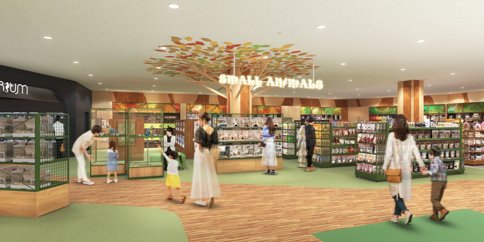 大阪市南部地域最大級となる同店は、「多様な生きものが“共生”する森 HIGO FOREST」をショップコンセプトに、緑が生い茂る森のような空間をご提供、訪れたお客様が出会ったペットたちにまた会いたいと思える、そんな未来を想起させる空間を目指しています。