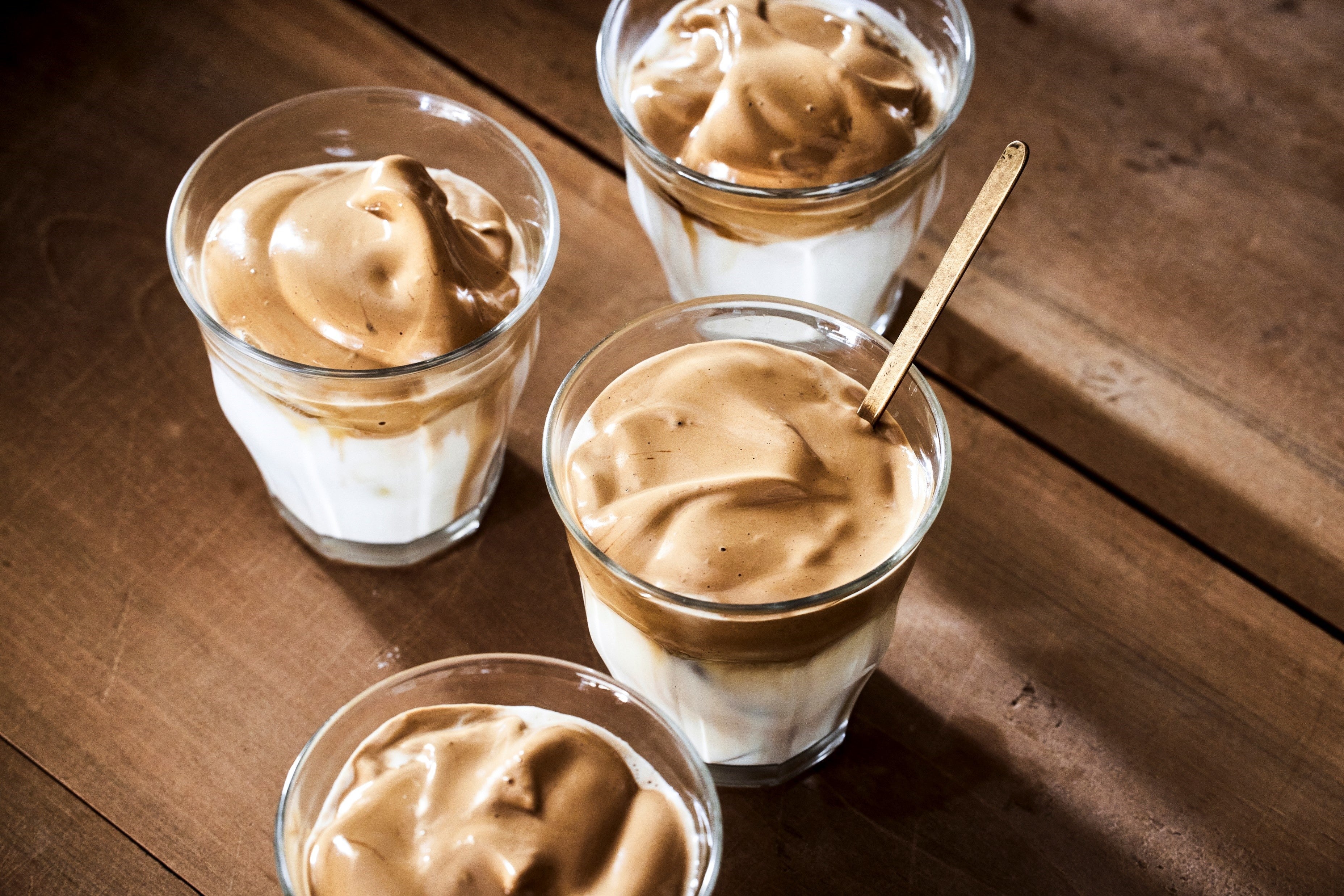 えっ!?というくらいモチモチふわふわなコーヒーの泡ができたら、お好みのミルクに乗せて。