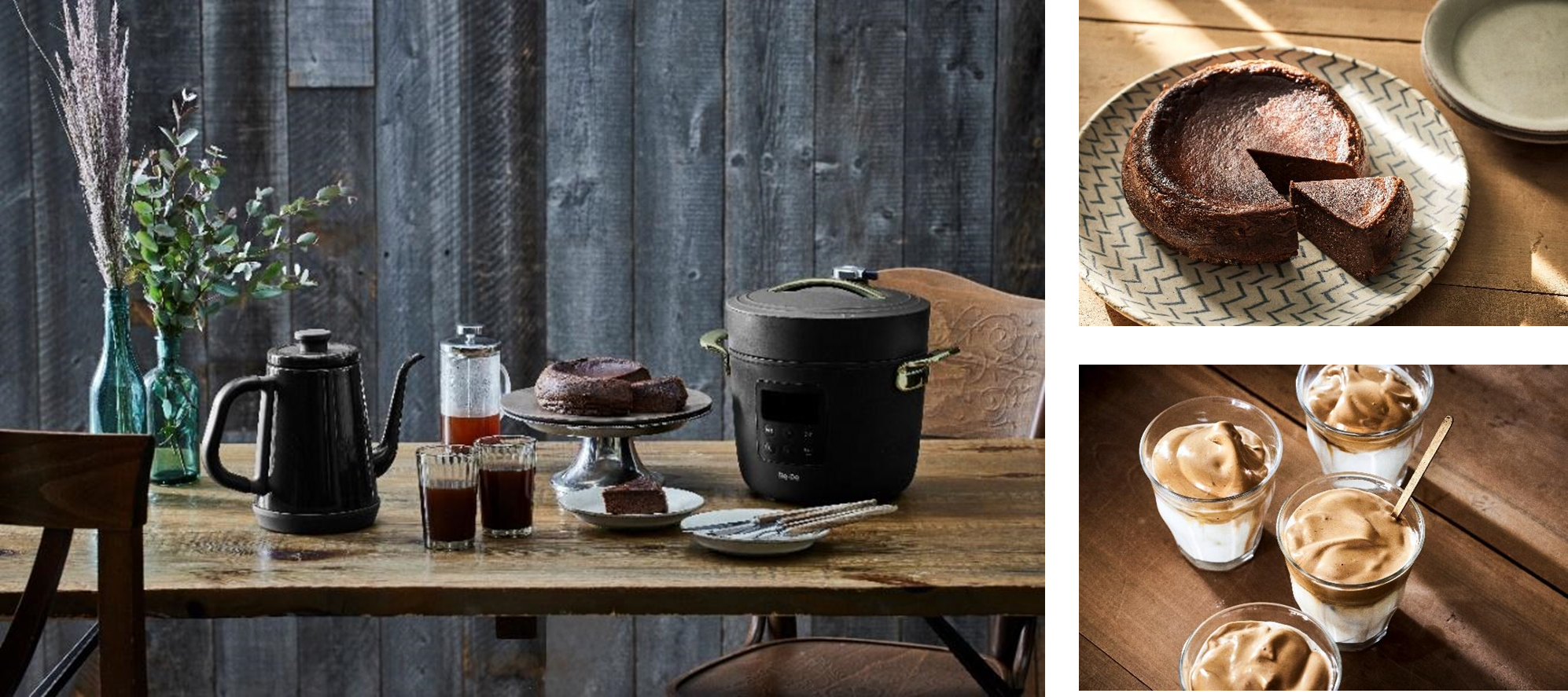 今回提案するのは、電気圧力鍋「Re・De Pot(リデ ポット)」と温度調節電気ケトル「Re・De Kettle(リデ ケトル)」で作る、バレンタインにぴったりなスペシャルレシピです。しっとりとなめらかな舌触りの「ガトーショコラ」や「チーズケーキ」、パンとフルーツをたっぷり使った「パンプディング」などのスイーツから、カルダモンやグローブが効いたエキゾチックな「スパイスコーヒー」、ホイップが楽しい「もちふわホイップ(ダルゴナ)コーヒー」といったドリンクまで、手軽に作れて、お子さんから大人まで楽しめるオリジナルレシピをご用意しました。
