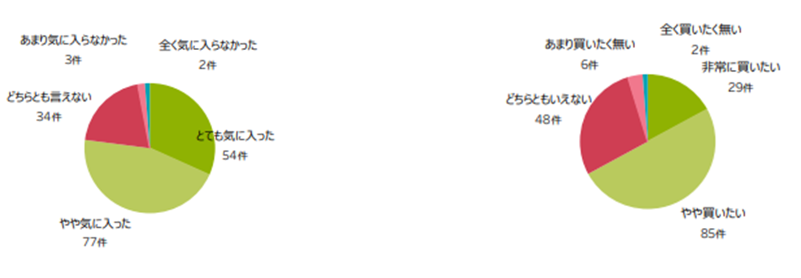 アンケートに回答した170名のうち139名がRe・De Potを「初めて知った」と回答したにも関わらず、77%のお客様から「とても気に入った」「やや気に入った」という好評の声をいただきました。