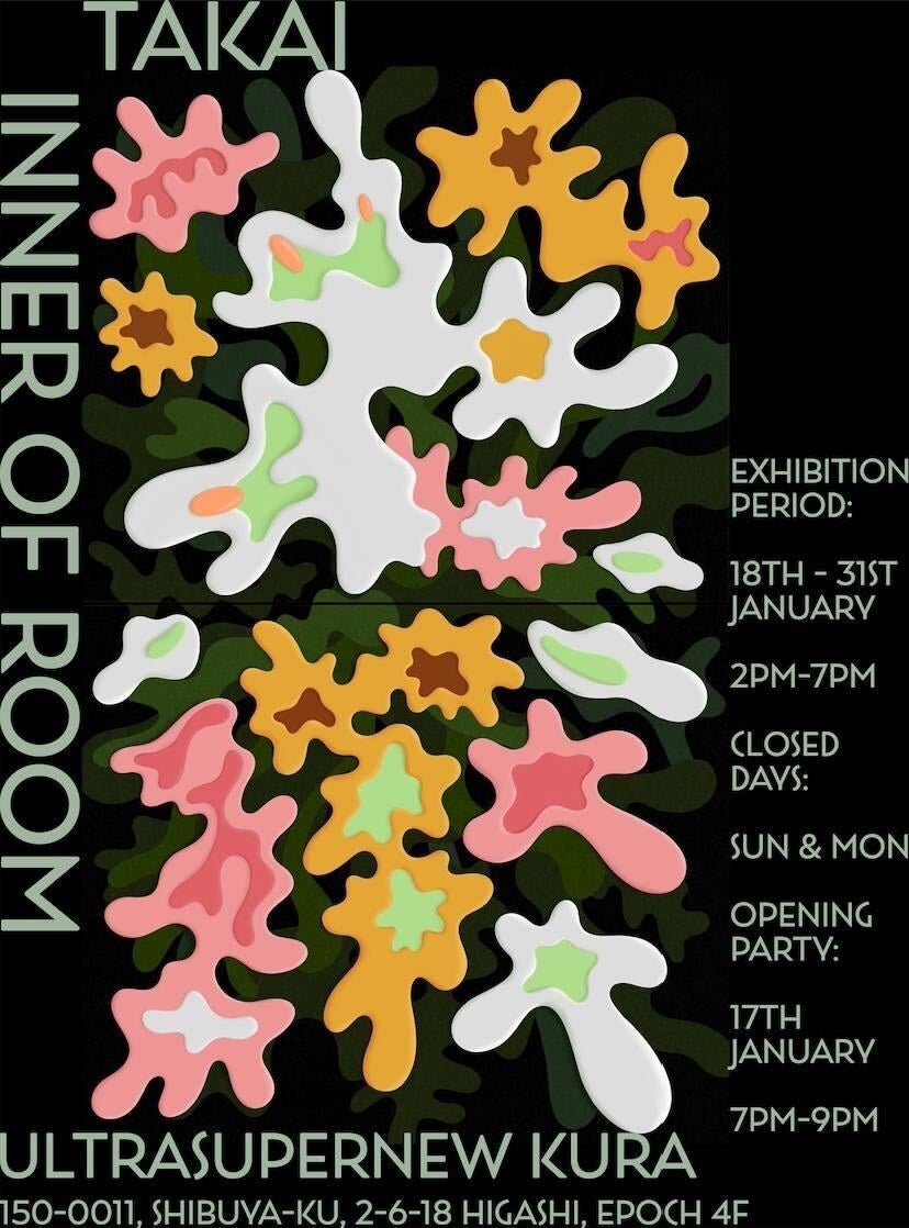 原宿のアートギャラリー「UltraSuperNew」を構え、クリエイティブエージェンシーでもあるUltraSuperNew、は、昨年末に東京・渋谷のオフィスにオープンしたオルタナティブスペース「Kura」にて、1月18日(土)から1月31日(金)の期間で日本人アーティストTAKAIの新作個展『INNER OF ROOM』を開催いたします。