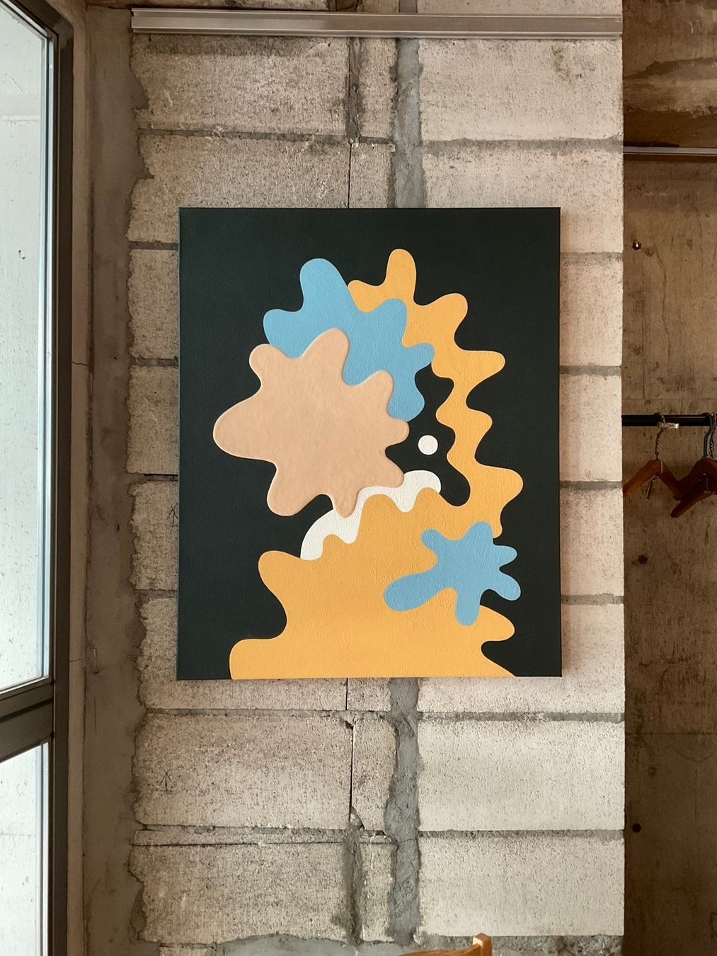 TAKAIは1993年熊本生まれのアーティストで、内面的な感情や経験を色彩で具現化する作風が特徴です。高校卒業後に自動車会社で7年勤務した後にアーティストとなった珍しいキャリアを持つTAKAIは、人生において無駄なことは一切存在せず、すべての出来事や経験は、自己の色彩を理解するための学びの一部だと語っています。渡英や新型コロナウイルスによるロックダウンなど、「価値観が振り回される」経験を経て、現在の「溶かす」表現を確立。これまでにも原宿や代々木上原などで個展を開催してきました。