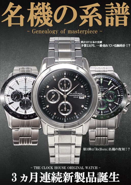時計専門店として国内最大248店舗(リアル店舗242 オンラインストア6)を展開する株式会社ザ・クロックハウス(本社:東京都中央区、代表取締役社長:平野信之)はプライベートブランドウォッチ(以下、PBウォッチ)である「THE CLOCK HOUSE(ザ・クロックハウス)」より「名機の系譜」と称し、3ヶ月連続リリースのファイナルを飾る第3弾を8月1日(月)にリアル店舗・オンラインストア同時に発売します。