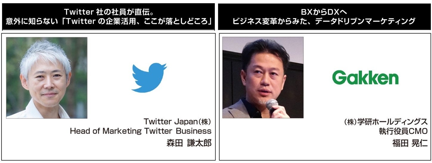 また、マーケティング部門では、Twitter、LINE、学研ホールディングスが登壇いたします。本講演ではシステム導入やデジタルの活用方法について説くのではなく、顧客にとって最良な体験とは何かを考え、サービスやマーケティング施策の設計構築の重要性について講演いいただきます。ビジネス変革から仕組み導入、マーケティングアクションまでを多数紹介するため、実用性・再現性の高いセッションとなっています。自分たちではできそうもない、やってみたけどイマイチだったという方に最適です。