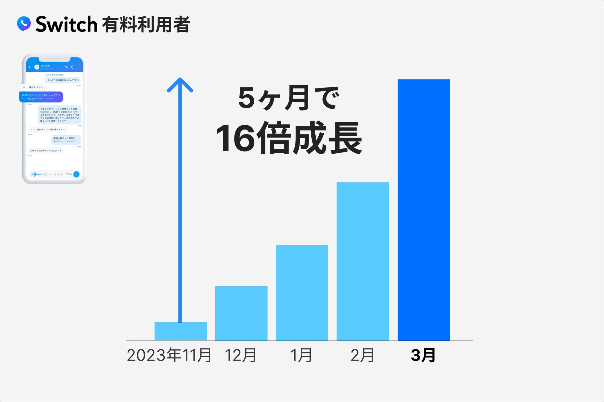 AIがビジネスコミュニケーションを変革中:AI通話録音アプリSwitch、発売5ヶ月で16倍成長