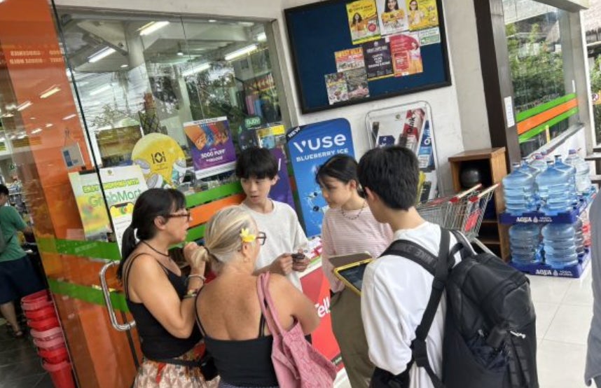 インドネシアバリ島を修学旅行では現地の企業への訪問を通して、企業の課題解決に携わる提案を修学旅行を通して考えました。提案を考える過程で生徒たちは、現地のスーパーマーケットでインタビュー調査を行なったり、最終日に実施した現地での商品販売会に向け、研修を通して、チラシの作成等の準備を進めていきました。最終回には、各グループが現地の人々に作成したチラシ等も用いて販売を実施し、また各企業の社長に英語プレゼンテーションを行いました。