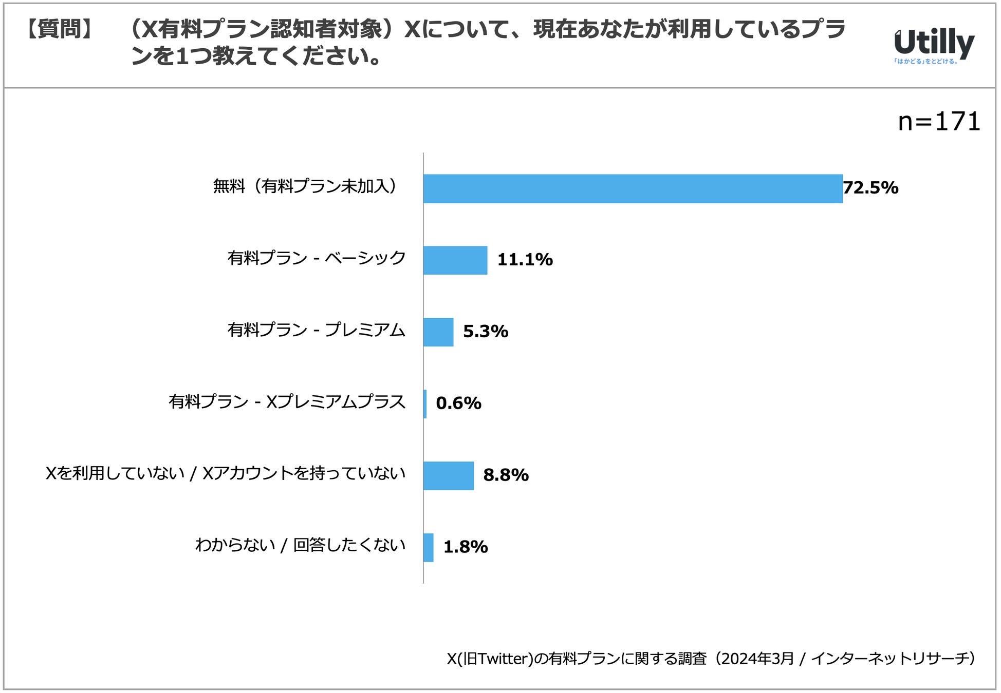 Q. Xについて、現在あなたが利用しているプランを1つ教えてください(X有料プラン認知者を質問対象)。